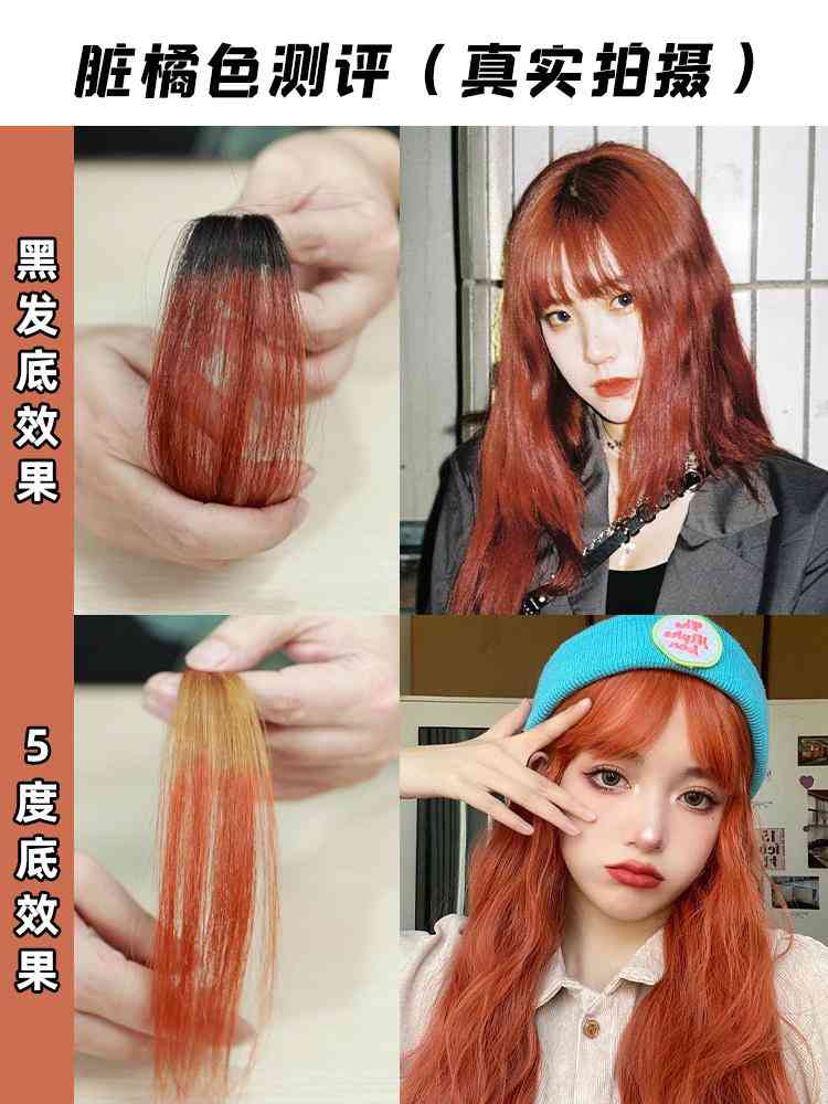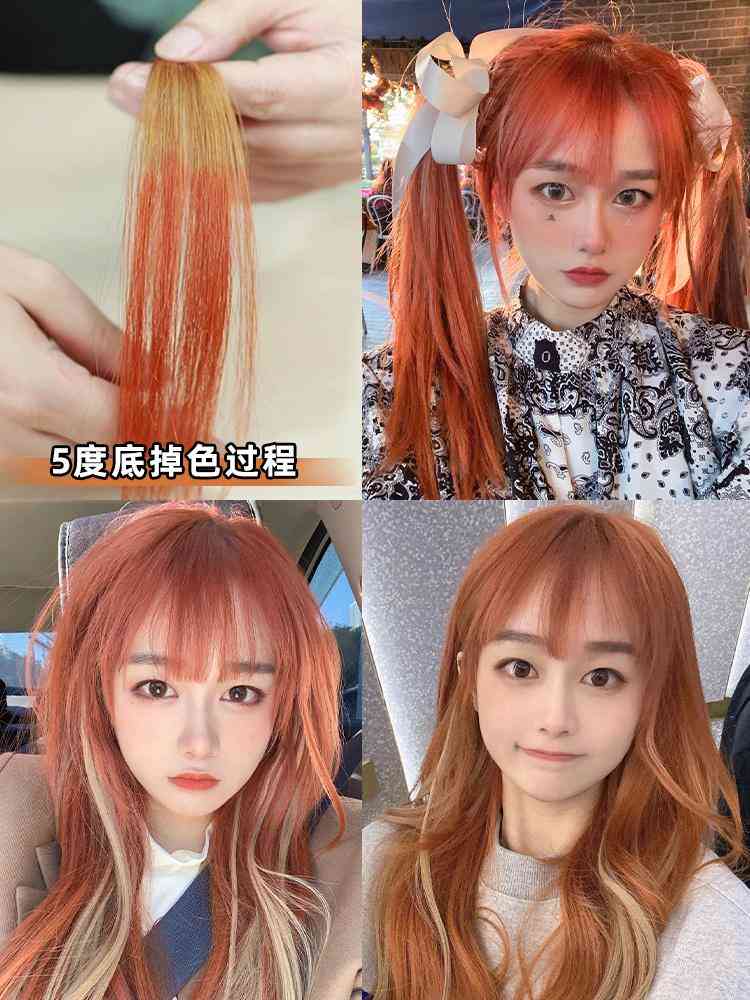 5度底染出来是橘红色~橘色少一点,红色多点点,但是也很好看!