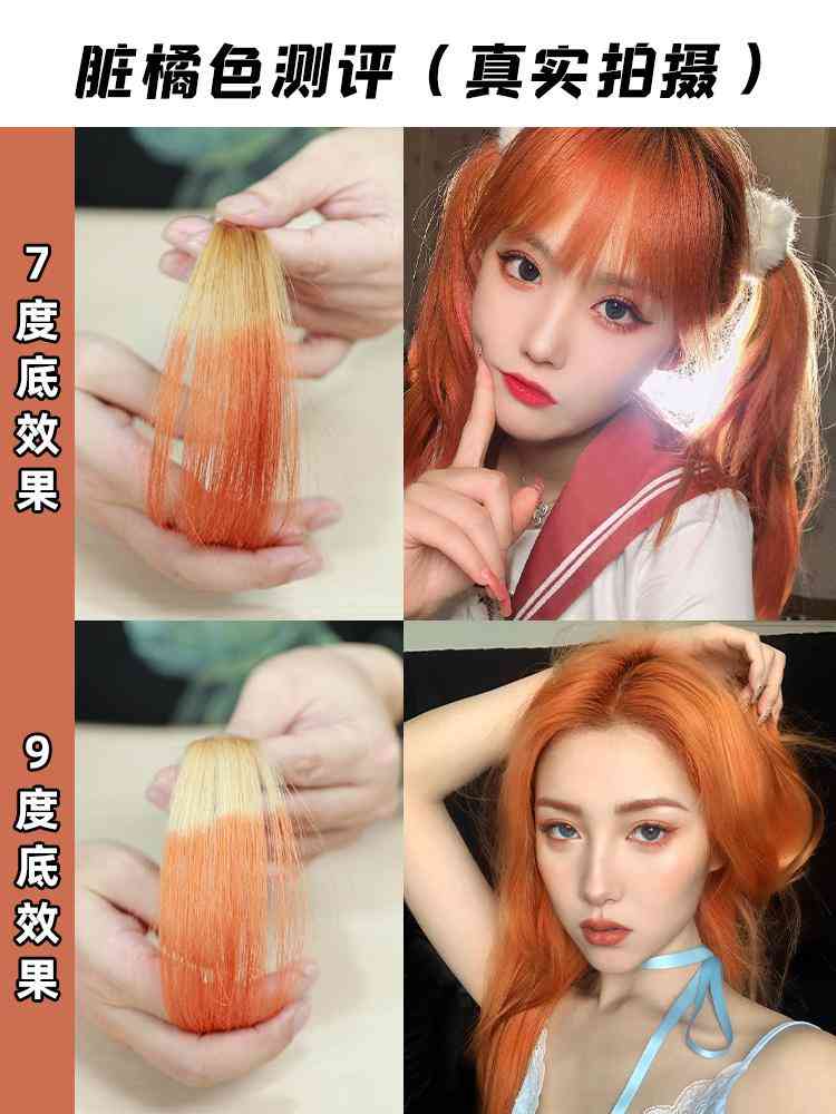 9度底染出来的脏橘色过于明显了感,有点荧光略的感觉,除非是冷白皮然后天天化妆,不然真的都hold不住这个颜色所以尽量在5-8度的底色去染效果会好一些。
