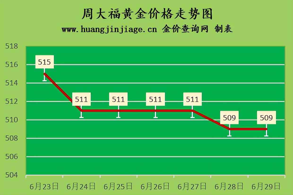 周大福黄金价格509元/克(持平),六福黄金价格509元/克(持平),周生生黄金价格509元/克(持平),金至尊金价509元/克(持平),谢瑞麟金价509元/克(持平),老凤祥黄金价格511元/克(跌1元),老庙黄金价格509元/克(持平),菜百金价505元/克(跌3元),周大生金价509元/克(持平),中国黄金价格509元(持平),金大福金价504元/克(持平),潮宏基金价509元/克(持平),周六福黄金价格510元/克(持平)。