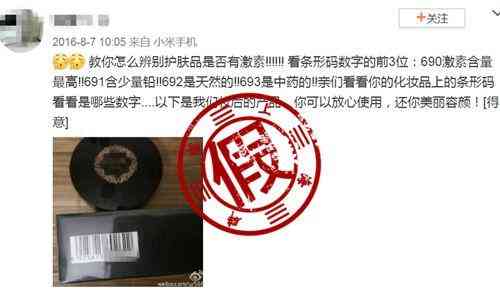 有网帖内容称:“在抖音上学到的新技能,如何区别化妆品的好坏?看包装条形数字的前三位数字,690代表激素含量最高,691代表含有少量铅汞,692是中药的,693是天然的,695是纯植物提取……看看你们在用的化妆品是什么情况吧。”