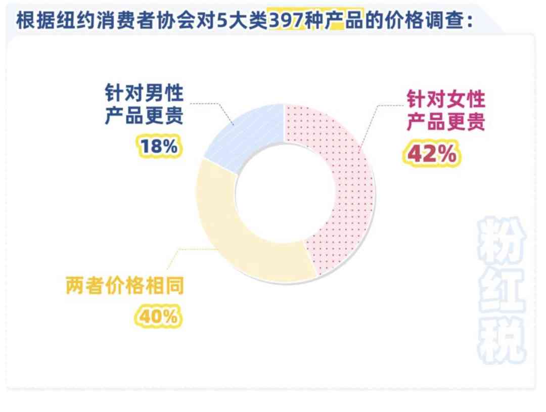 比如,美国纽约消费者协会曾对5大类397种产品进行价格调查,女性产品价格更高的情况占了42%,男性产品价格更高的情况仅有18%。