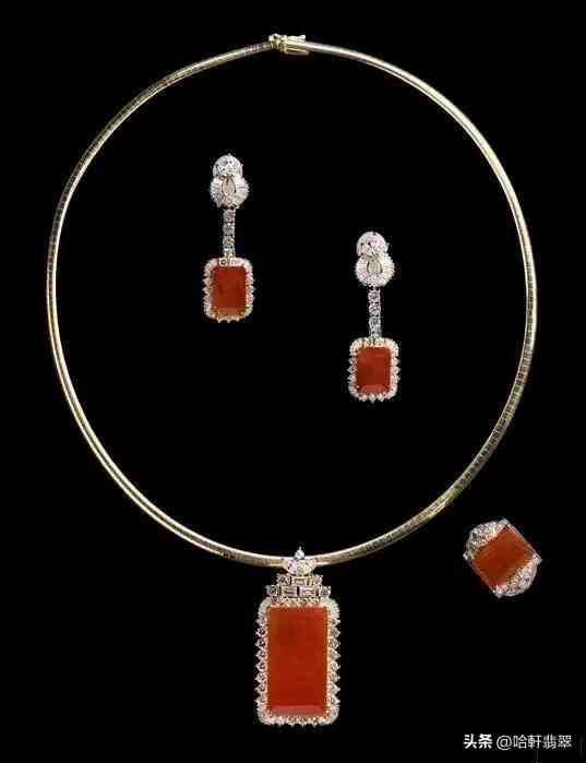 像2017年的某个珠宝展上,就曾展现过一套冰种红翡晚宴套装(上图),4颗素面高冰种红翡虽然颜色不算特别浓郁,但胜在种质细腻通透无杂质,妥妥的高档翡翠行列。