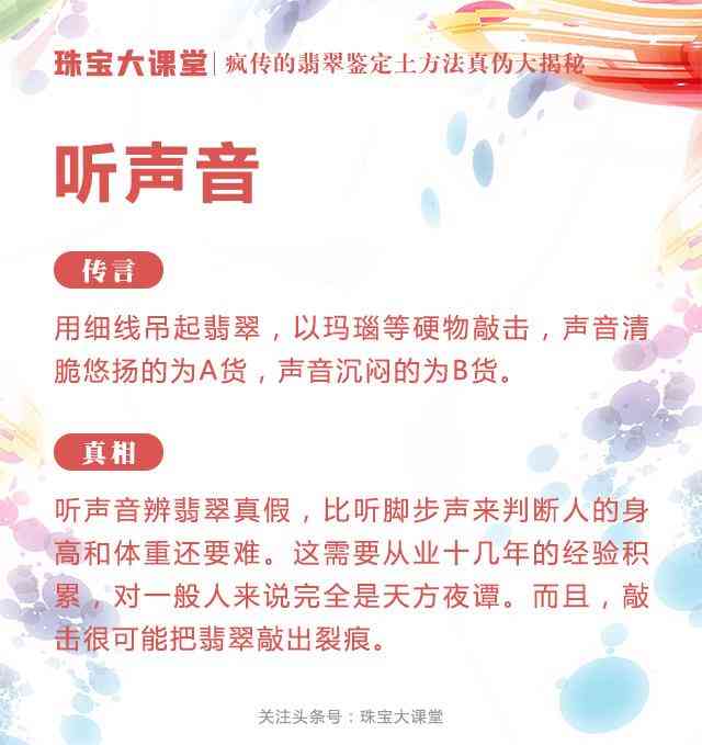 真相:听声音辨翡翠真假,比听脚步声来判断人的身高和体重还要难。这需要从业十几年的经验积累,对一般人来说完全是天方夜谭。而且,敲击很可能把翡翠敲出裂痕。