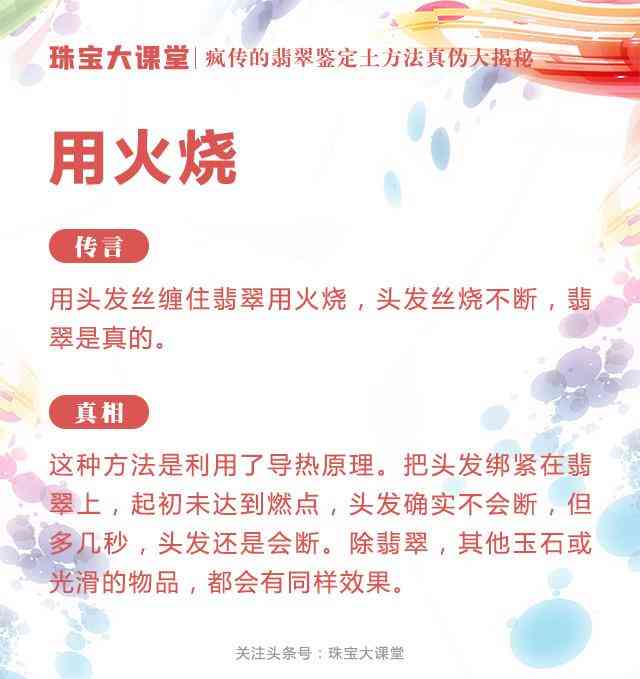 真相:这种方法是利用了导热原理。把头发绑紧在翡翠上,起初未达到燃点,头发确实不会断,但多几秒,头发还是会断。除翡翠,其他玉石或光滑的物品,都会有同样效果。