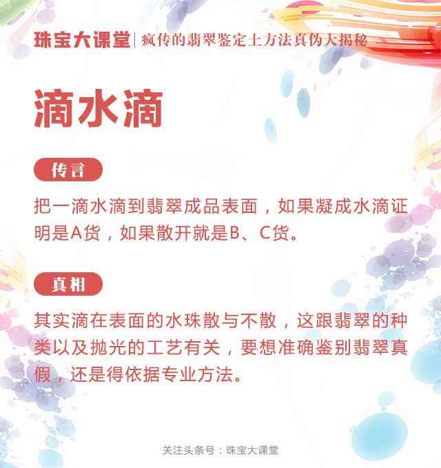 真相:其实滴在表面的水珠散与不散,这跟翡翠的种类以及抛光的工艺有关,要想准确鉴别翡翠真假,还是得依据专业方法。