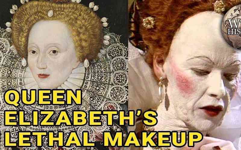 在圣母女王时代,夸赞女性的最高标准是光滑白皙的皮肤,为了达到这种效果伊丽莎白一世使用了一种由白铅和醋制成的化妆品。她用这种物质拍的自己的脸和脖子,之后皮肤就变成了 一种闻起来像酸酒的怪异瓷器帆布。