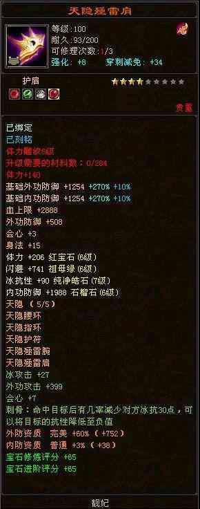 宝石打造还是保留了套装时代的内外功特色。