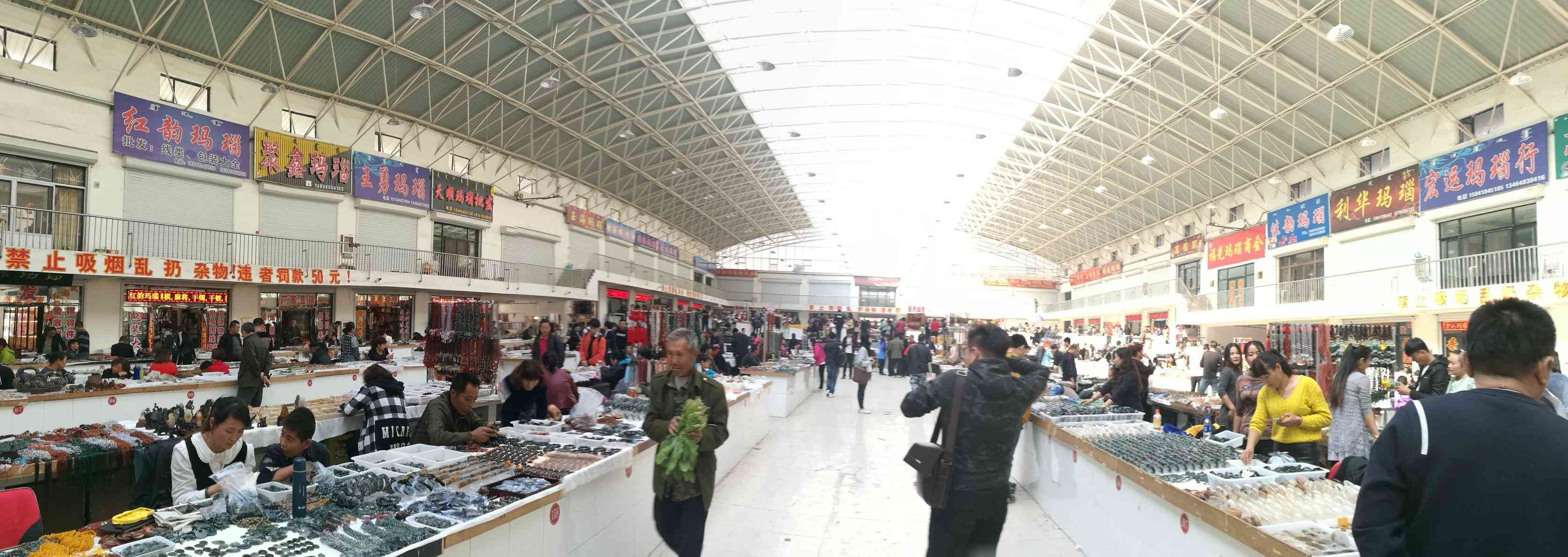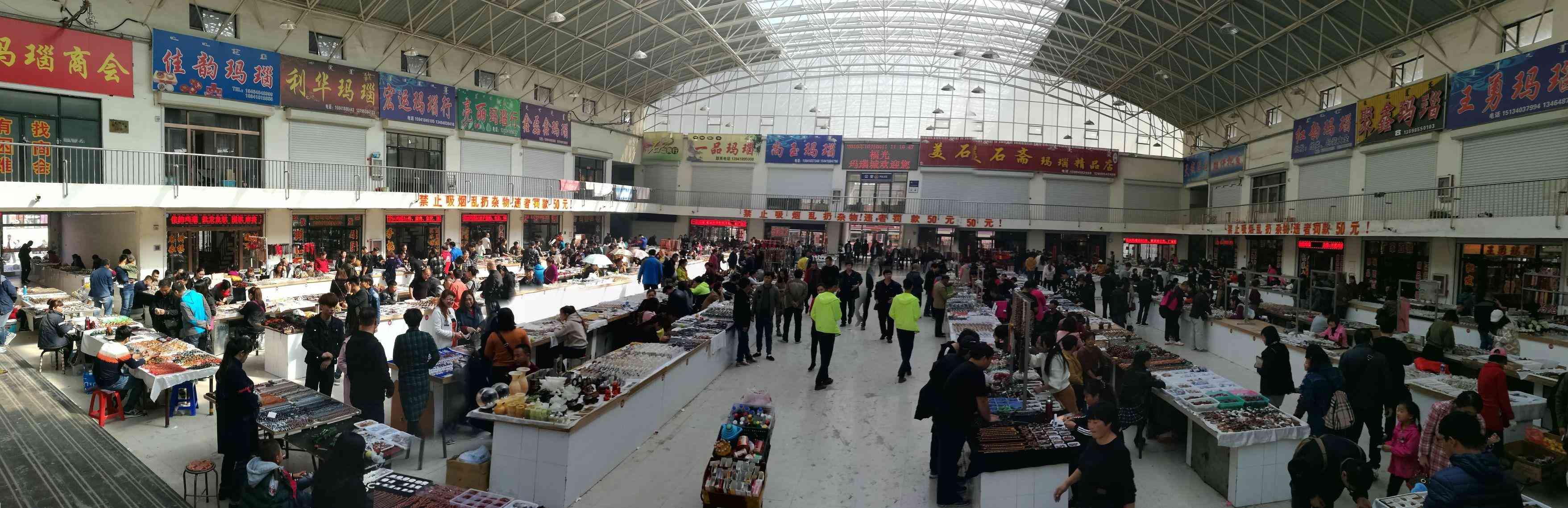 下面是两个大厅的全景图,张是建成十多年的玛瑙交易市场;第二张是刚建成没多久的战国红玛瑙交易大市场。