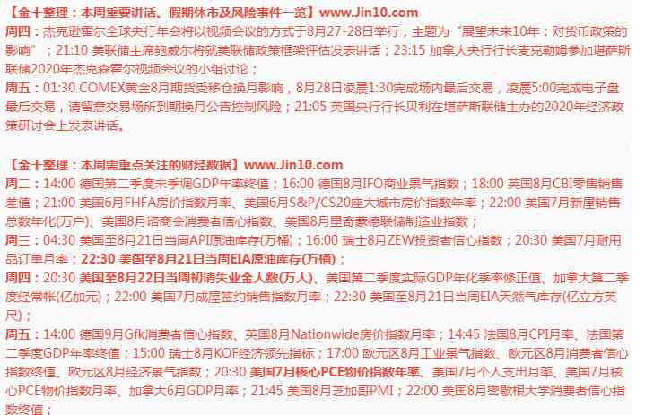 虽然议员们仍然难以就进一步的救济措施达成一致,但重点将转向周四美联储主席杰罗姆·鲍威尔在堪萨斯城联储年度研讨会上的讲话。