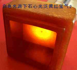 田黄有“石帝”之尊,贵在与人相亲。在白色光源下,田黄石心内部必泛黄红之光,宝气灿烂,否则不是田黄。