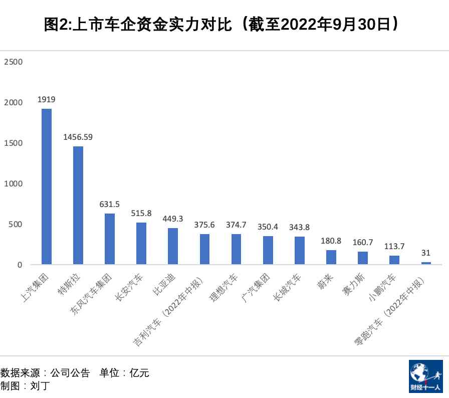 他们都是依赖从资本市场融资,烧钱造车,圈的钱多,但花的更甚,截至2022年9月30日,蔚来手里还剩下180.8亿元,赛力斯有160.7亿元,小鹏汽车的“现金及现金等价物”为113.7亿元。
