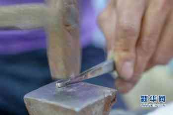 8月7日,上塘银饰特色小镇,工匠展示当地传统打银技艺。新华网 肖和勇 摄