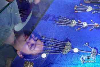 8月7日,上塘银饰特色小镇,游客在银饰展上观看老银饰精品。新华网 肖和勇 摄