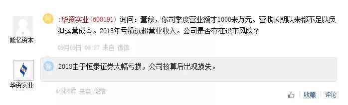近日,有股民针对华资实业的现状提出疑问。华资实业董秘回复称,2018年由于恒泰证券大幅亏损,才导致公司(华资实业)核算后出现亏损。