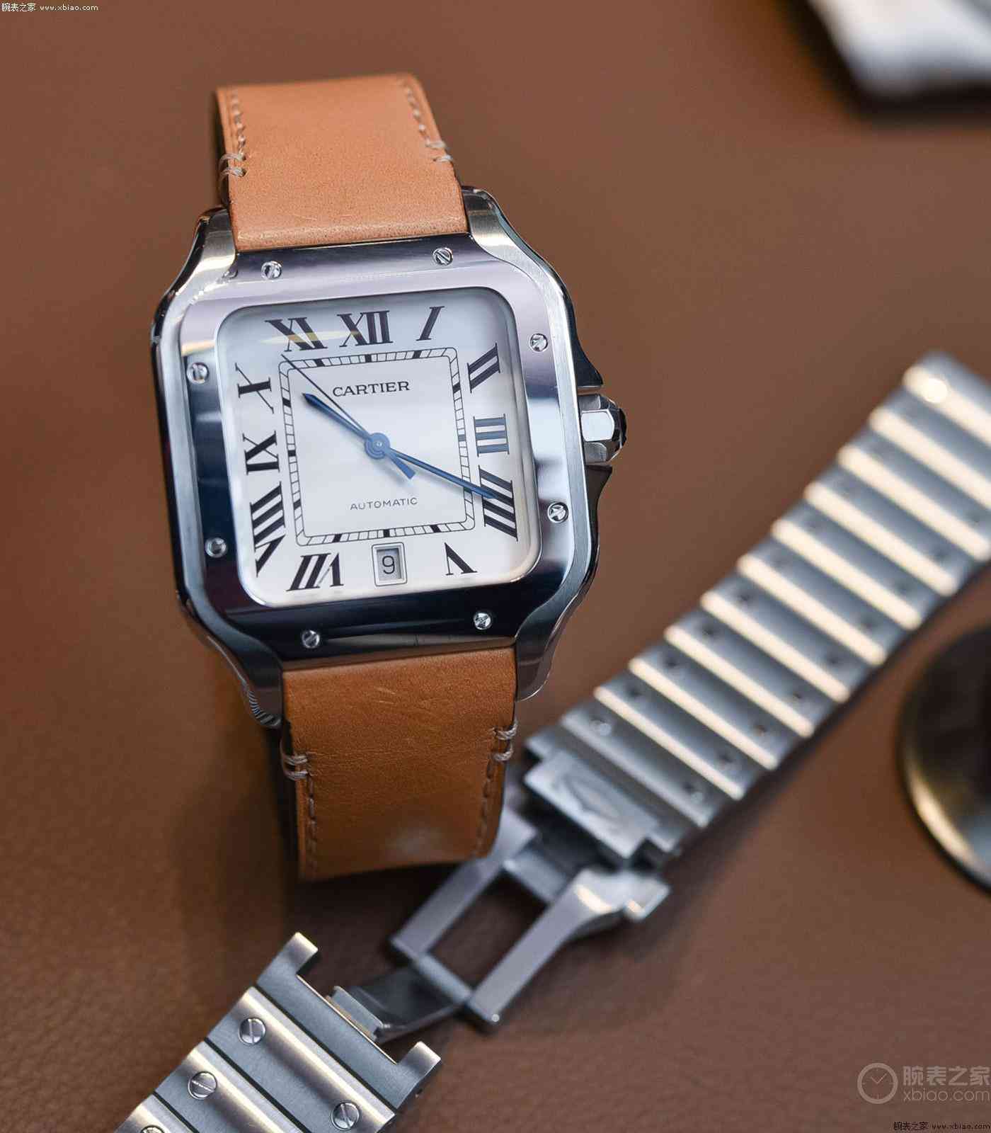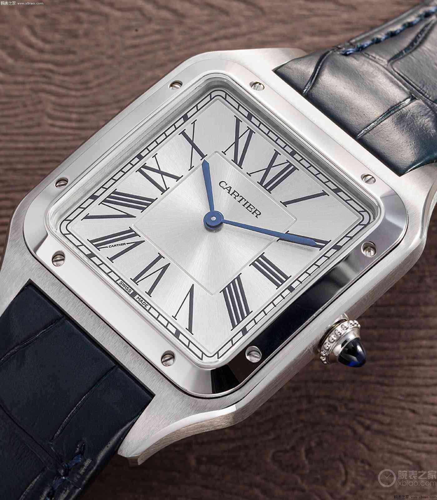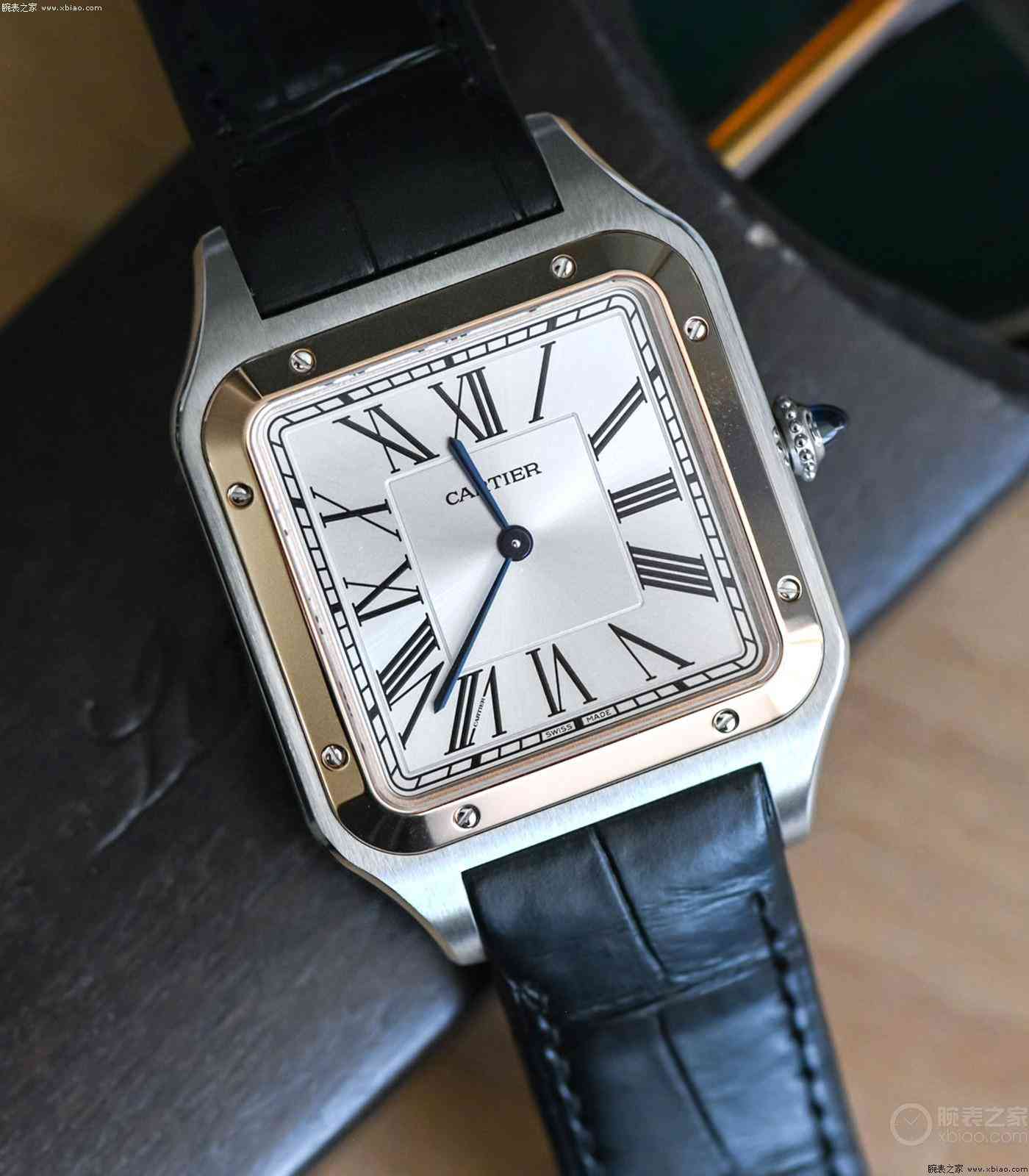 山度士杜蒙,是偏向于正装的超薄款式,只配皮带。虽然山度士杜蒙和常规款,外观很像,但山度士杜蒙的厚度,非常薄。其中男款加大号,使用卡地亚430MC手动上弦机芯,即伯爵的430P机芯,大幅降低了手表厚度,山度士杜蒙厚度只有7.5毫米(小号款和中性款都是石英的)。随之而来的是30米防水,可见是一只妥妥的正装表。男款公价45900起步。