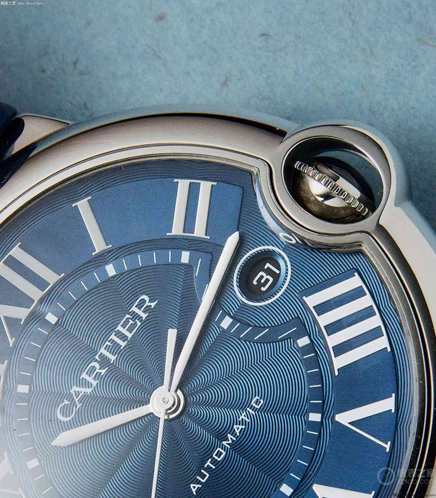 蓝气球是卡地亚少有的圆表,除了识别度极高的圆形尖晶石表冠外,蓝气球的表壳造型,也参考了卡地亚历史上著名的Pebble(鹅卵石)手表,形成了中间厚四周逐渐变薄的鹅卵石造型表壳。整体设计复杂。蓝气球男款,主打40毫米、42毫米两个尺寸。男款蓝气球已经全部换装卡地亚自产1847MC自动机芯,机芯配置水平和同集团万国、沛纳海一致(1847机芯和万国32000、沛纳海P900是同款兄弟型号)。