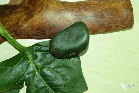 这就是一个玩家用籽料和菠菜放在一起的对比图。比菠菜叶还要深邃。