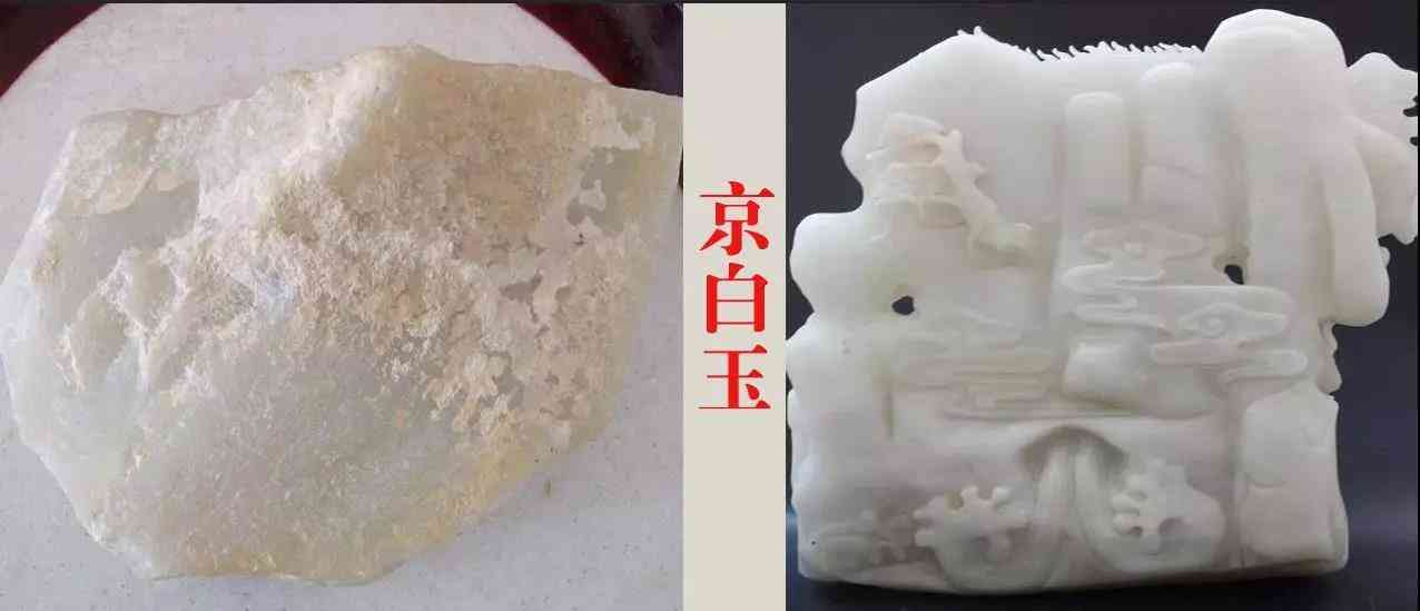 京白玉是一种质地细腻、光泽油润的白色石英岩,由于最早在北京西部郊区开采,故取名京白玉,后来在全国都有发现,分布极广。京白玉与和田玉相似,很多时候,会出现把京白玉混在和田玉中一起出售的情况。京白玉不如和田玉润泽,表面为玻璃光泽,而和田白玉为油脂状、半玻璃光泽;此外,和田玉触手温润,断口为蜡脂状。这些都与京白玉不同。