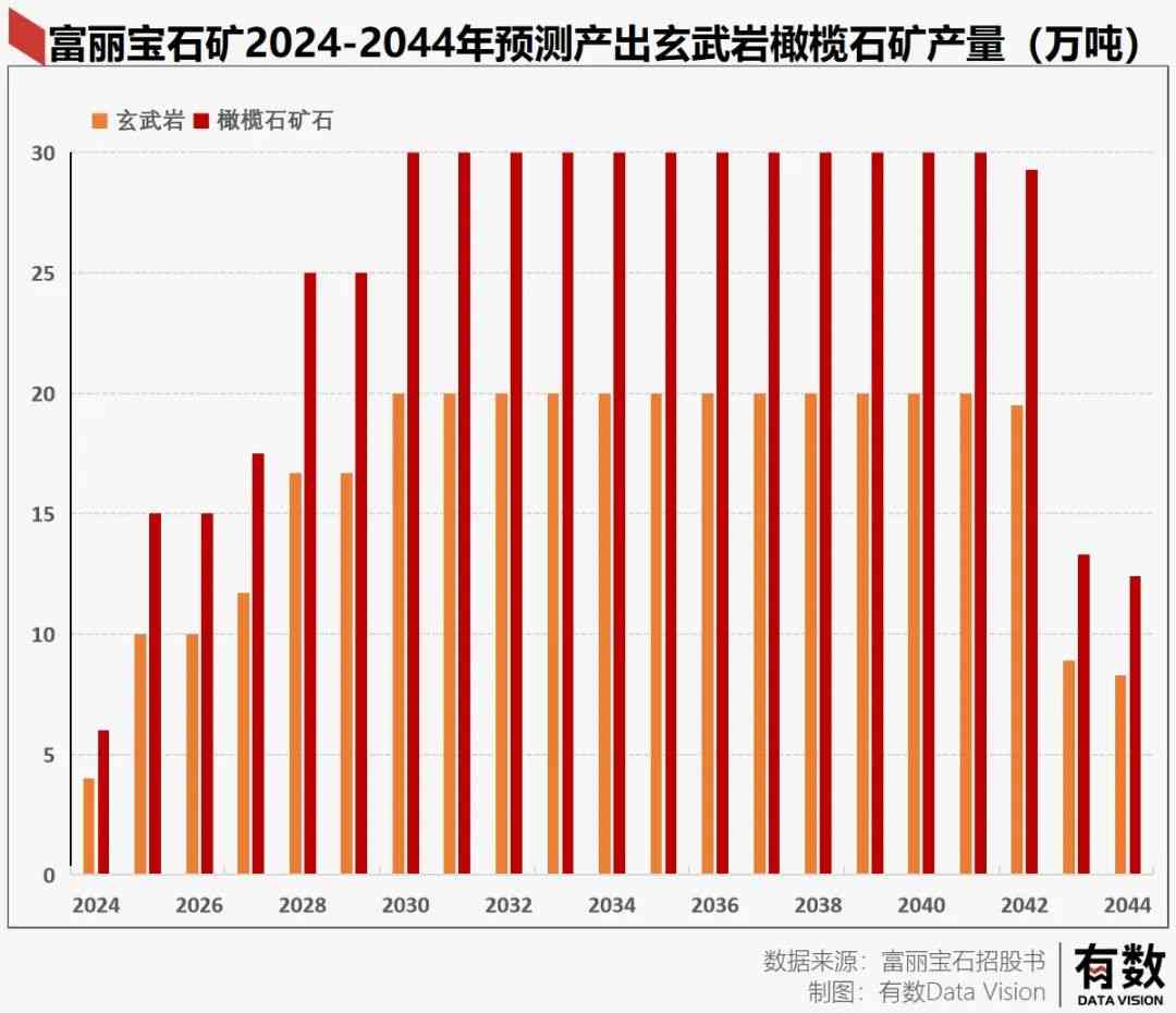 之后是产能爬坡期:2023年起,公司开始下矿。据估计,这一年橄榄石矿石产量可能仅有6万吨,到了2028年就可以攀升至25万吨。