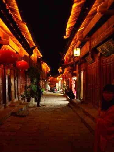 晚上去酒吧街逛了逛,才发现原来之前去的是小四方街,真正的四方街在更远的地方,古城好大。酒吧街除了嘈杂还是嘈杂,一条街上全是酒吧,每一家的歌手都撕心裂肺的吼着,生怕唱的轻了客人就被别家吸引过去了。个别酒吧有简陋的舞池,里面的人跳着蹩脚的舞,也没有领舞,不过大家都很high~转了一圈出来,也没有坐下喝一杯,啤酒是200元/扎。实在受不了这么吵的环境,今晚被“庸俗”熏陶了。