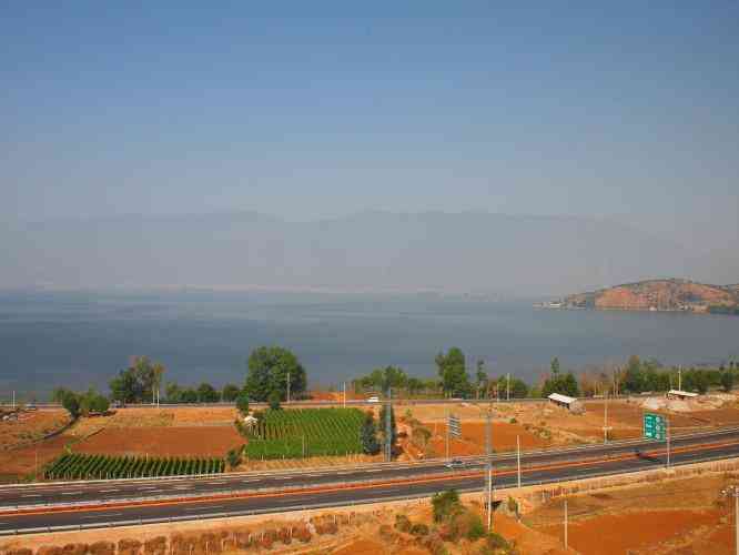 喜洲民居离洱海约摸3,4公里的样子,于是想到洱海看看。在四方街借了电瓶车15元/每小时。本以为开到洱海很快,结果绕了洱海边上的村庄一大圈,近在咫尺却被村子遮挡了。村里的路七拐八弯的,地上都是暴晒着的芦苇杆,很难开,有些地方颠簸的厉害。绕洱海一周骑行有60公里,可想而知。