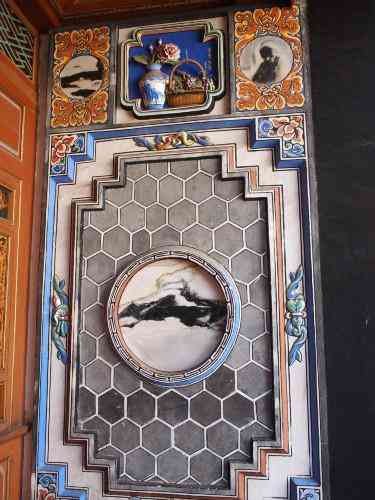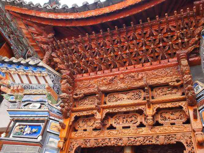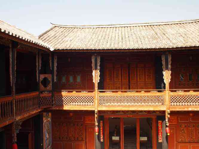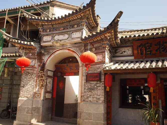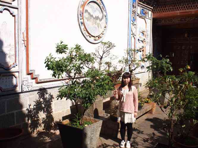 看完表演品完茶后,景区导游免费讲解。才知道这个隐匿在区区喜洲的深宅大院是如此富有,30年代就有折合人民币30亿的资产。“三坊一照壁,四合五天井”的院落里随处是浮雕和花木,阳光随着照壁折射到厅堂,顿时满目生辉。虽然庭院的雕刻比不上江南园林的精细,飞檐峭壁中却也彰显了商人的大气和豪迈。可能是因为门票的关系,严家大院的游客很少,有一种独享之乐,在这人满为患的5.1假期,能有如此美丽而又宁静的景点很是感慨。