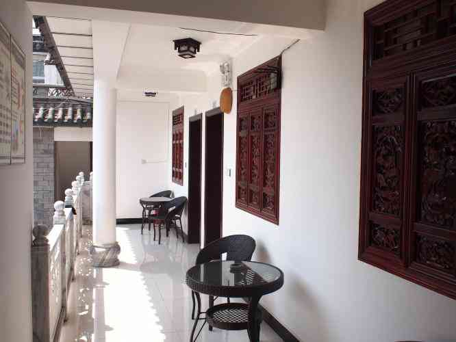 夕露小榭位于七一街下段,临近南门,虽说位于主干道,离最中心的四方街还是很远。预定夕露小榭,主要是看上它的名字,据说出自于诗经,心想有文化的商人开的旅店和我性情合拍。客栈外观非常低调,门虽小里面却别有洞天。庭院是极具特色的纳西院落,保留了纳西大户人家的古建筑风格,木雕精美,通透亮堂,还是丽江古城的重点保护建筑。一进到房间就被感动了,双份的特仑苏牛奶,德芙巧克力,法式小面包,可乐,矿泉水,这些都是免费的,第二天的早餐一下就有了。再定睛一看,房间内全是实木的古典家具,少说也得好几万,布置的很温馨,像是蜜月房。床品和毛巾都是名牌的,淋浴也很高端,难怪是5星级标配!400的房价还是物有所值,整家客栈和房间都赏心悦目,可以说是丽江的精华之一。