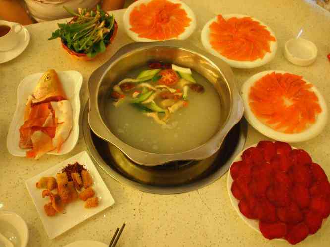 丽江随处可见三文鱼餐厅,一直以为三文鱼是海水鱼,而且是深海冷水高纬度,原来在雪山也有,真是不来不知道。由于生鱼片要慎重,必须去正规干净的店,束河回来路上,我们选择了丽江市中心大名鼎鼎的“梦想家三文鱼餐厅”。梦想家非常大,规模类似于一个海鲜城。二楼都是堂吃的,每桌有个火锅。三文鱼分成2种,金鳟和虹鳟,金鳟比较贵,正在搞特价55元/斤。三文鱼是一条一条点的,至少都在3斤以上,2个人真实悲催了。排队捞鱼的时候,我和师傅说我们才2个人,吃不了那么大。于是师傅说,他刚杀了一条鱼,半条做菜了,还剩半条,刚好给我们。我问是不是活的,虽然吃不了但要活的鱼,师傅包票是活杀的。一称1.6斤,一共就88元,还可以吃到三文鱼三吃,真是太好了。三吃就是三文鱼刺身,炸三文鱼皮,三文鱼头和鱼排刷火锅。除了刺身,其他真的可以直接扔掉了,鱼皮硬的咬不动,而且没有味道的。鱼头和鱼排没什么肉了,仍火锅里也不会吃。虽然只是半条三文鱼,可是刺身竟然有满满3大盘,吃完半年不想碰三文鱼了。