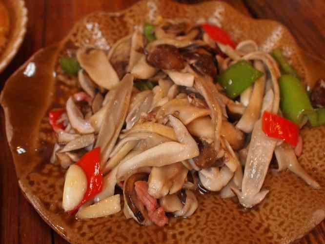 拿到菜单,更是简简单单的正反一张A4纸。点了这里特色的藏香猪,爆炒小黑猪38,很大一盘配红绿彩椒,肉香滑而爽脆。炒野菌38,有老人头38和牛肝菌48两种,牛肝菌没有了,就点了老人头。不知道这是一种什么菌菌,反正很新鲜很好吃,用青椒一起炒的。点了丽江粑粑8,甜的而且有点油腻。还送了一包纸巾,不像其他地方这样的纸巾都是要收费的。老板不是本地人,听口音像是北方的,看这菜量就知道挺豪爽。我边吃饭边吸氧气瓶,引来了许多注目,店员惊奇的和我说,这才多少米,就要吸氧了?看来我真不适合行走于高原。
