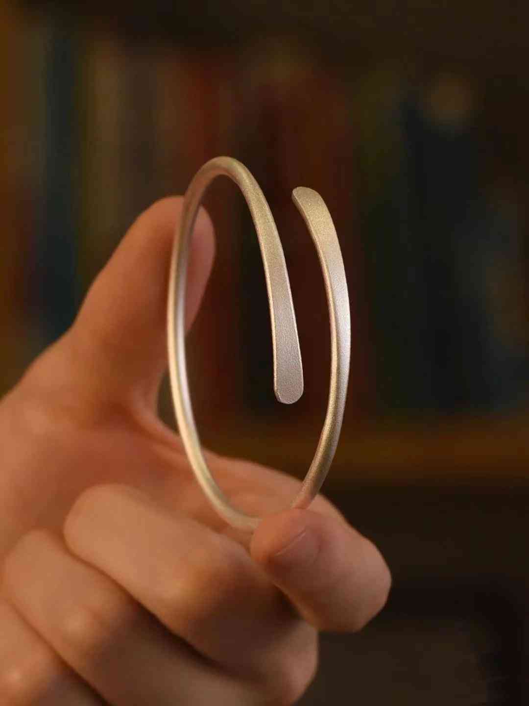 素圈手镯是一种比较高级而又大气的选择,这种手镯选择了古法工艺,磨砂质感,特别的高级大气。虽然设计感没有那么强,却也凸显出浑厚大气之美。适合气质高级,穿搭比较简约的女人佩戴,更容易提升气场。