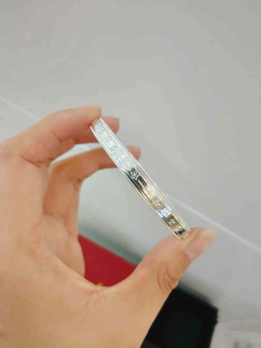 如果觉得看硬度的方式有点冒险,那么我们还可以选择听声音的方法来判断银手镯的真假。纯银发出来的声音比较浑厚平稳,不会有尖锐刺耳感。所以当我们将手镯自然向上抛的时候,可以通过下落是发出的声音来判断银手镯的真假。