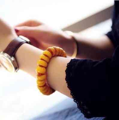 蜜蜡手串——蜜蜡有比较悠远的历史,而且从形成之期到被人们发掘,沉睡了很长时间,在这段时间中它吸日月之灵气,让它变得更加的通灵,而且在蜜蜡沉睡期间也从外界吸收了一些微量元素,而这样微量元素对人体有积极的作用。人们佩戴蜜蜡的时候,那些微量元素就会渗透到人们的肌肤之中,通过血液循环分布在全身,能够促进血液循环,将血液中有害的物质通过汗液排出体外。大颗粒的蜜蜡手串特别适合丰腴的女性佩戴,彰显贵气。而且由于它较其他材质较轻便,特别适合夏季及出行佩戴。