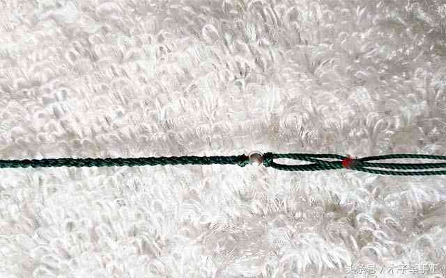 2、做一段四股辫后再用金刚结固定,从头到尾6cm长左右,具体长度按自己手围来定。