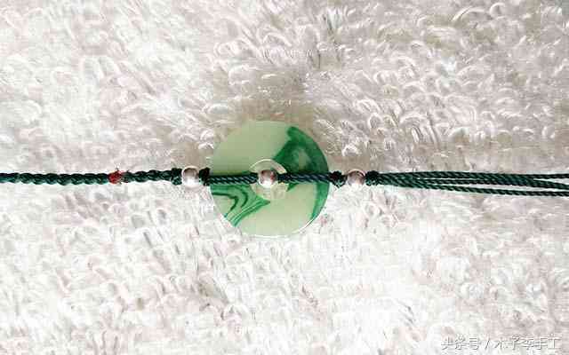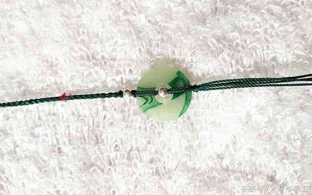 6、再把两根线穿出平安扣,用金刚结固定。