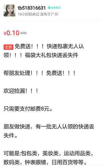 而卖家所说的“福袋”,指的就是在这一次山竹肆虐中,泡了水、磕碰损坏、无人认领的快递包裹。买家只要支付9.9元运费,就能得到一个这样的“运气商品”。卖家称包裹中的商品一切“随缘”,可能会很值钱,也可能一文不值,全看买家的运气了。