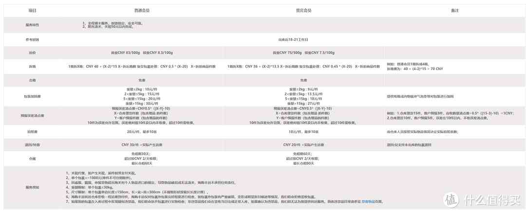 价格为普通会员,首重CNY 83/500g 续重CNY 8.3/100g;贵宾会员,首重CNY 75/500g 续重CNY 7.5/100g;合箱免费(也就是多个商品拆箱放在一起发用来节省费用);包装加固额外收费(乐高、手表、电子产品一定要记得加固哦!);另外还有关税,关税是根据不同商品在进入中国时缴纳,大家需要购买时了解商品的大致关税,以免加上后超过了国内。此外,有些转运公司提供了保价、开箱拍照等增值服务,大家按需选择即可。