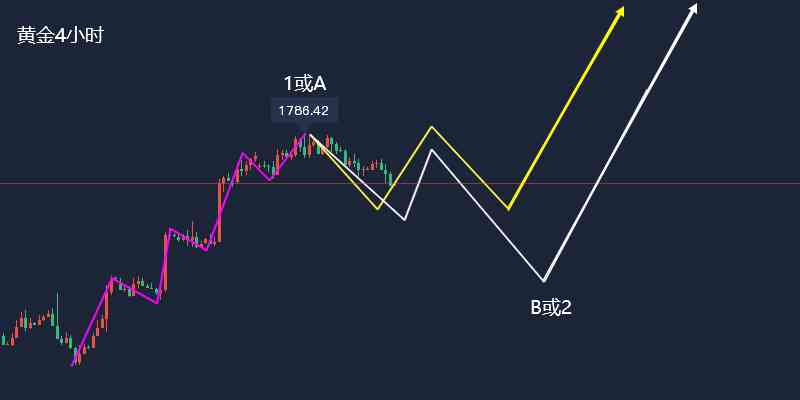 4小时级别来看,黄金自1615上涨1786内部走了7波,目前1786向下属于调整初期,当前结构还不明显,后面存在多种变化,后面可能走平台形(3-3-5)或者锯齿形(5-3-5)又或者联合形(WXY),后面还须进一步等待观察,后面行情如何走我们不得而知,但当前行情大概率处于调整结构中,在调整结构走完之前,我们操作思路以逢高做空为主,低多为辅。暂时中线不去考虑。