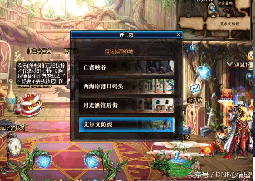 赛丽亚房间右侧有一个传送阵,这应该很多人都知道,能传送四大目的地“亡者峡谷”,“西海岸港口码头”,“月光酒馆厚街”,“艾尔文防线”。只要你轻轻的点击“艾尔文防线”,就能出现在这张地图上,而映入眼帘的是一个叫做“短腿的托比”NPC。