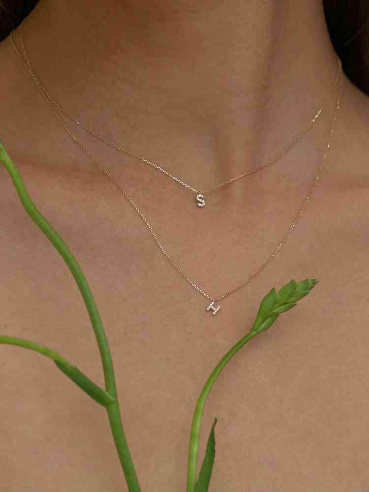 这条真的是又精致又好看的一条字母项链了,细链子显气质,字母上镶嵌着锆石,若隐若现的闪不要太美。需要留意的是,这款项链链子特别细,字母也是非常非常小巧的,是一种小而美、小而精的感觉,适合喜欢这种调调的仙女。
