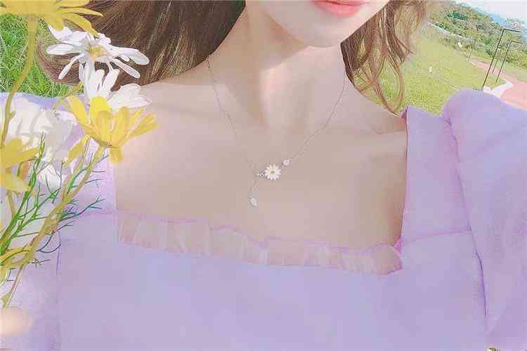 这条项链搭配小裙子太完美啦,超仙超好看,非常适合夏天佩戴,小雏菊做工精致,光泽感强,链子可以调节,纯银的质感不显廉价。