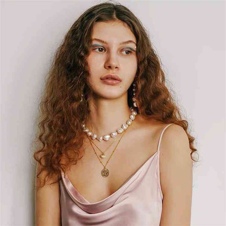 多层叠戴是今年最流行的佩戴方式了,多层项链,给夏天的基本款造型增加了一些时髦感,不仅同一种材质叠戴好看,不同材质,也可以随意搭配,比如珍珠、心形、硬币等。即使穿一身黑叠戴也能时髦感十足。