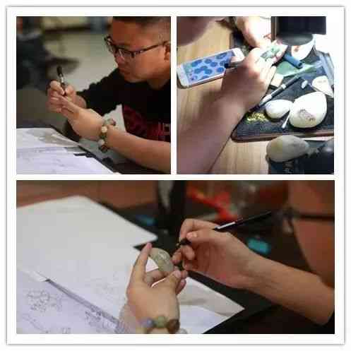 根据选择的材料认真审视,将构思好的题材,根据玉料的材质、子皮、俏色,在玉料上进行描绘勾勒。