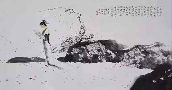 人去楼空,杨龙友在杂乱的地上捡起扇子,白色绢面上映着点点血红,他拿起笔勾勾画画,把鲜血画成了一树艳丽的桃花。