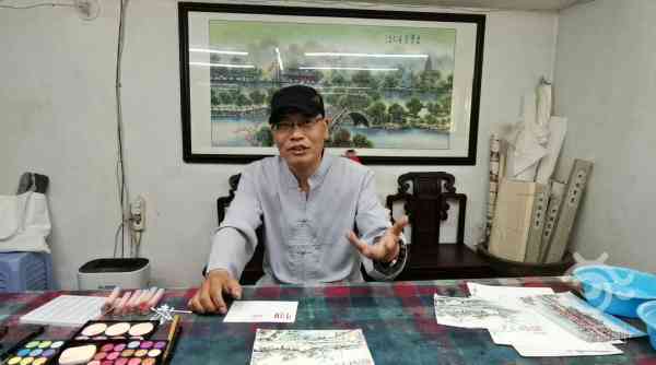 黄锦耀说自己用化妆品画画的视频上传到网上后反响很热烈,一些苏州园林、小桥流水的画都是应粉丝要求在直播中创作的。