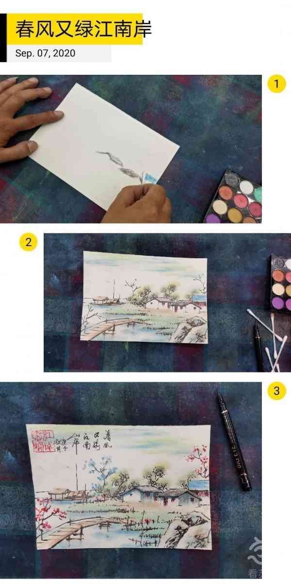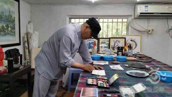 这次,黄锦耀给看苏州记者当场创作了一幅画,棉签上色,手指晕染,眼线笔勾线……不一会儿,一幅江南水乡图就跃然纸上。