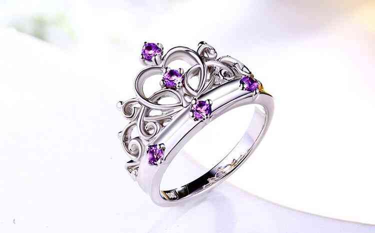紫水晶戒指:一种最为普通古老的宝石,但它那荧光可爱的紫色让人欲罢不能,它同样是一块心灵宝石,佩戴紫水晶戒指的人会越来越聪明,它能舒缓人的压力使人放松,同时也有着诚实,平和的寓意。二月的生成石。