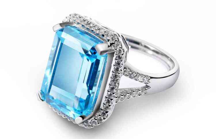 海蓝宝石戒指:海蓝宝石鲜亮的海蓝色让人欢喜,透亮的海蓝色和大海想呼应。它是三月的生辰石,也被称为福神石,古人赋予它勇敢与幸福的寓意,它能让佩戴它的人幸福而勇敢,让人勇往之前。
