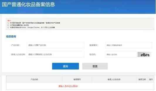 打开官网首页找到化妆品板块,点击“国产普通化妆备案信息”,根据提示输入信息进行查询。