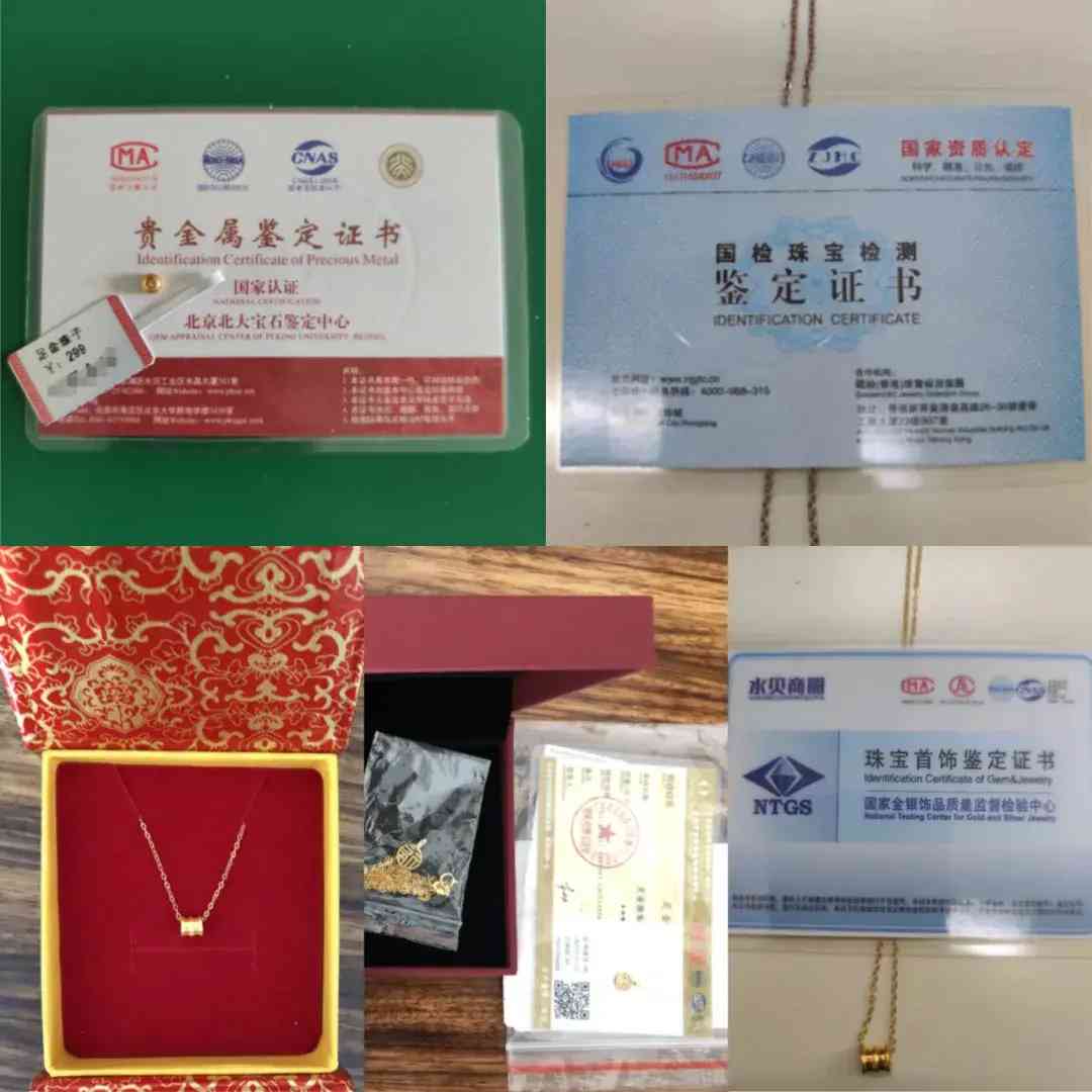 0.12克与每经记者在购买时,主播所展示的国检证书上显示的“足金挂坠”0.9克相去甚远,只有将925银项链一起称重,重量才勉强接近。因此,随项链一同到达的国检鉴定证书亦是“疑点重重”。“商品所带鉴定证的标注存在问题,按照实物,应标注为足金挂坠(含项链)0.9克,且需注明项链材质为925银。”徐振华进一步告诉每经记者,“鉴定证书上笼统地将项链和吊坠的材质混为一谈的做法,本质上属于商家混淆消费者概念的擦边球行为。”