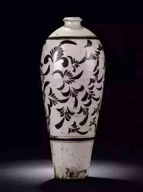 南宋吉州窑黑地白花荷花纹梅瓶